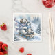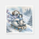 En polar björn och en penguin sjunger med glädje ner ett snöstrå backe, hopbundet i mysiga sjalar och öron