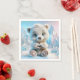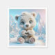 En söt polar bär unge med stort, uttryckligt ögon och tassar i ett hjärtläge i ett snölandskap omgivet av gnistande iskristaller