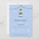 En blå familjär inbjudan till Julfest med en söt polar med gåvor och lite julljus på framsidan och falla snö på baksidan. Anpassa den till värdlandets namn, datum, tidpunkt och plats för evenemanget. Lägg även till din OSA-information. © ArianeC Illustrations-Alla höger reserverade