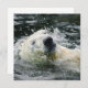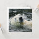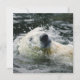 En solitär polar bär simmor genom isig vatten på ett smärtsamt sätt, dess stora vita huvud som bryter yta med bara droppar av vatten som är upphängda i det stora luft.