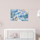 En fredlig vinterscen med polar björnar i ett snöslandskap. Det finns två framstående polar i förgrunden, ett sitta och ett stående, med flera mindre polar i bakgrunden. Inställningen omfattar snö-täckt gräs träd, ett bergsområde under ett kallt himmel, flygande fåglar och ankor vid vatten. Den detaljerade beskrivningen av naturen och djurlivet skapar en lugn atmosfär.