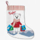 En vitjulstrumpa med rosor och en röd randig fauxgräns och en polar björn för mammor som bär 4 shopping bag. Skräddarsy den med ett namn.