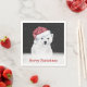 Polarna bär Jultomten hatt i snöflingor mot svart bakgrund. Bakgrunden till färg kan ändras. Text kan redigeras eller tas bort.