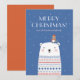 Det här julhälsningskortet har en söt illustration av en isbjörn med en fågel på huvudet. Det kan enkelt anpassas med din egen hälsning och namn. Det finns också plats för foton och fler önskningar på baksidan.