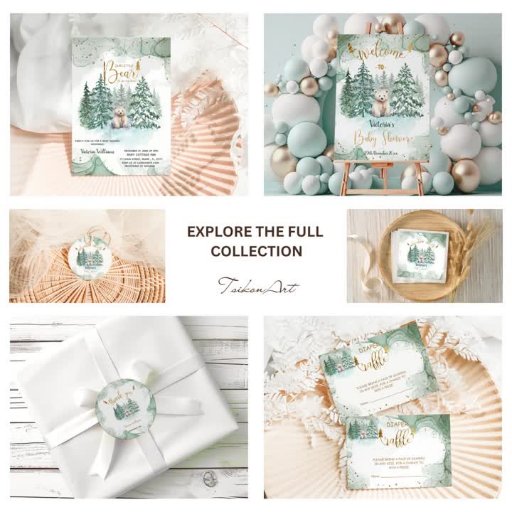 Fira den förestående ankomsten av en älskad unge med vårt söta isbjörn-inspirerade bebis shower tackkort, allt mot en lugn snöig tallskog.