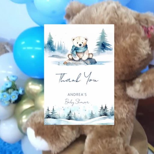 Polar björn arktisk vinter kan vi vänta tidigt på välkomstskylten för babyduschmallen poster omedelbar digital nedladdning, vattenfärgssöt nalle för polar med blå scarf sitta på issnövit i sten i gräs, välkomstskylt för personlig-babyduschingbesökare