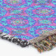 En pulserande mönster av cirkulära motiv placeras i ett symmetriskt rutnät mot blå bakgrund. Varje motiv består av komplicerade, färgstarka detaljer som bildar en kaleidoskopisk effekt med harmonisk upprepning.