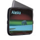 En polar stjäl is under polarnas långa natt, norra Ljus i rött och grönt i avstånd. Texten "Alaska" i ljusblå och vit text visas också.