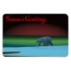 En polar stjäl is under polarnas långa natt, norra Ljus i rött och grönt i avstånd. "Säsongens hälsningar" visas också i rött.