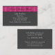 Utformning av polerat Rand-affärskort i grått och rosa. Denna eleganta och djärva utformning skulle vara underbar för alla i professionellen fält, som till exempel finanser, auktionshus, bokföring, försäkringar och annat. Gör det här affärskortet till ditt eget genom att lägga till dina personuppgifter. Den här enkla men djärva designen kommer säkert att göra perfekten påstående!