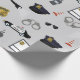 A hand drawn design featuring cute police themed illustrations. A cop themed design featuring illustrations of police car, police hat, police badge, handcuffs and more. An ideal design for anyone who loves police, police cars, cops and robbers illustrations. A perfect design for police themed parties, kids bedroom decor and personalized gifts.