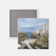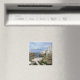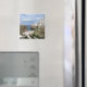 Fotomagnet från Souvenir med stadstranden och bukten som gränsar till vita hus på klippklippor i kuststaden Polignano a Mare in Puglia, södra Italien med texten: "Puglia, Polignano a Mare".