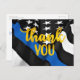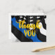 USA American Flagga Thin Blue Line Polis Tack-kort - Amerikansk flagga och tunn blå linje, modern design med guld-skript. Visa er uppskattning för en framstående polisman eller en tillsatta lagar-polis med detta tunna blå amerikanska flagga tack, perfekt för polisuppskattning, poliser och polisavdelningar, polisvecka och tillsatta lagar. COPYRIGHT © 2020 Judy Burrows, Black Hund Art - Med alla Höger reserverade. vykort för Tillsatta lagar Tack för polisskript i Guld