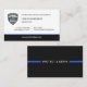 Modernt svart visitkort för poliser och lagföringsproffs med en tunn blå linje logotypdesign. Skapat för att presentera dina kontaktuppgifter med en stark, professionell look som speglar tjänst och identitet. Perfekt för nätverkande, officiell användning och professionell varumärkning. Redigerbar text och logotypplacering. Rent tryckfärdigt layout.