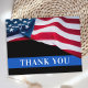 USA American Flagga Thin Blue Line Polis - Tack för ditt kort - amerikansk flagga och tunn blå linje, modern design på svart. Visa er uppskattning för en framstående polisman eller en tillsatta lagar-polis med detta tunna blå amerikanska flagga tack, perfekt för polisuppskattning, poliser och polisavdelningar, polisvecka och tillsatta lagar. COPYRIGHT © 2020 Judy Burrows, Black Hund Art - Med alla Höger reserverade. Postkort för amerikanska poliser i Tillsatta lagar Tack
