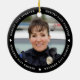 Heroes lever för alltid! Ärade er älskade polisman och med den här Thin Blue Line Police Memorial-prydnaden i en amerikansk flagga svart och blå design i polis flagga. Anpassa med din polisfoto, polismannens namn och EOW-datum. Denna tunna blåraka polismemorandumet kommer att vara en välkänd keepy för att hedra en fallit polis eller en tillsatta lagar-polis. Perfekt för polismyndigheter att hedra en avliden polis. COPYRIGHT © 2020 Judy Burrows, Black Hund Art - Med alla Höger reserverade. Polisassistent vid Fallen Officer Thin Blue Line Ceramic Ornamic