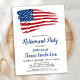 USA:s inbjudningar till amerikanska Flagga militärpartiet Pension. Detta moderna och trendig rött vitt blått, stars och stripes, amerikanska Flagga inbjudningar är perfekt för ett militärt party i pension, soldater som åker bort party, militära utplaceringar som skickas iväg, militära välkomnande hem firande och militära studenterna, poliser pension, statliga polismyndigheter pension party, tillsatta lagar,, brandmän, brandkår och pensionerade veteraner. Anpassa den amerikanska flagga inbjudan till dina soldater, poliser eller veteranevenemang, namn och party. Se vår samling för matchning av militära gåvor från pension, militära gåvor från studenten, party favors och förnödenheter. COPYRIGHT © 2021 Judy Burrows, Black Hund Art - Med alla Höger reserverade. Patriotic Pension Party USA American Flagga Announcement Postcard
