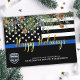 Skicka God jul hälsning till vänner, företag, medarbetare i tillsatta lagar och ert samhälle med detta unika Thin Blue Line Police Department-julkort - Amerikanskt Flagga i polis i flagga, modern svart och blå med grå löv och bär och elegant färg skript. Anpassa med polisavdelningens logotyp, meddelande och avdelning. COPYRIGHT © 2020 Judy Burrows, Black Hund Art - Med alla Höger reserverade. Polisavdelningen Jul Tillsatta lagar Lycklig Helgdag Card