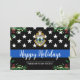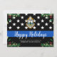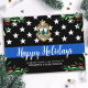 Skicka God jul hälsning till vänner, företag, medarbetare i tillsatta lagar och er gemenskap med detta unika jullkort för Thin Blue Line Police Department - American Flagga in Police flagga färg, modern black and blue with holly lövs and bär. Anpassa med polisavdelningens logotyp, meddelande och avdelning. COPYRIGHT © 2020 Judy Burrows, Black Hund Art - Med alla Höger reserverade. Logotyp för polisavdelning Anpassningsbar Thin Blue Line Helgdag Card