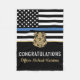 Den här utformningen har en polisstyrka med svarta och vita ränder, och även en tunn blå flagga rand. Ett underbart sätt att säga grattisar till den nya polisakademin student. Anpassa till namn om den examinerande tillsatta lagar-officeren i guld. Fira milstolpen i stil!