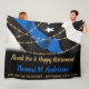 Thin Blue Line Police Pension Blanket - USA American flagga design in Police Flagga, modern black and blue with guld string ljus design . Personligens polisfilt är perfekt att fira er pensionerade tillsatta lagar-polis, poliser i party, tillsatta lagar pension party. Anpassa polisens pension-filt med poliser namn, tjänsteår, polisavdelning och datum för pension samt personligt budskap. Perfekt för polistjänstemannens gåvor från pension party och tillsatta lagar pension. COPYRIGHT © 2020 Judy Burrows, Black Hund Art - Med alla Höger reserverade. Polischef Pension Thin Blue Line Fleece Blanket