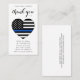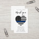 Tunt Blue Line-poliskort - Amerikansk flagga i Polisblå Flagga, modern svart blå design. Visa er uppskattning för en framstående polisman eller en tillsatta lagar-polis med detta blå tack, perfekt för polisuppskattning, poliser och polisavdelningar. Citat: "Två små ord Tack verkar så små jämfört med allt du gör, men kom är det djupaste av våra hjärtan." COPYRIGHT © 2020 Judy Burrows, Black Hund Art - Med alla Höger reserverade. Polisassistent Thin Blue Line Flagga Heart Tack Affärskort