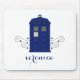 Quirky and roligt Police Box Swirls Mousepad med en briljant blå vintage British Police box flanked by cascades of swirl flourations and blue stars. Enkel att anpassa, lägg bara till ditt namn eller annan personlig. Klicka på Anpassa om du vill söka efter fler anpassningsalternativ.