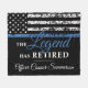 Den här utformningen har en polisstyrka med svarta och vita ränder, och även en tunn blå flagga rand. "Legend har pensionerat sig" står ovanför anpassadet namn på den pensionerade tillsatta lagar-officeren, sheriffen, kaptenen eller chefen. Fira milstolpen i stil!