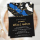 Tunn blå linje polisexamen inbjudan . Fira din nya polisexamen och bjud in vänner och familj till din polisexamenfest med denna Thin Blue Line Flag polisexamen inbjudan. USA amerikansk flaggdesign i polisflagga färger, modern trendig svart vit och blå med guldsträng ljus design. Denna polisexamen inbjudan är också perfekt för polisens pensions inbjudningar, ändra plats i personalisering. Se vår samling för matchande polisexamen gåvor, polisakademin examen fest favoriter och tillbehör. COPYRIGHT © 2021 Judy Burrows, Black Dog Art - Alla rättigheter förbehållna. Polisexamen Tunn blå linje inbjudan
