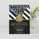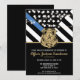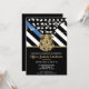 Denna design har en polisflagga med svarta och vita ränder och en tunn blå rand också. Polisens märke och gul text sitter ovanför all information om den pensionerade polisen, sheriffens, kaptenens eller chefens pensionsfest.