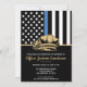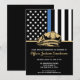 Denna design har en polisflagga med svarta och vita ränder, och en tunn blå rand också. Polisens märke och gul text sitter ovanpå all information om festen för den pensionerade polisen, sheriff, kapten eller chefs pensionsfirande.