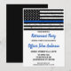 Tunn blå linje inbjudningskort för pensionering av poliser eller inbjudningskort till polisens examensfest. Fira års tjänst eller fira din nyautexaminerade polis och bjud in vänner och familj till din fest med detta inbjudningskort i USA:s flagga-färger med tunn blå linje och med distress-design. Detta inbjudningskort för pensionering av poliser är också perfekt för inbjudningar till polisens examen, ändra plats i personalisering. Se vår samling för matchande gåvor för pensionerade poliser, gåvor till nypromoverade poliser, festartiklar och tillbehör. COPYRIGHT © 2021 Judy Burrows, Black Dog Art - Alla rättigheter förbehållna. Inbjudan till pensionering av polisen Tunn blå linje.