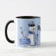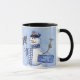 I helgdag-kaffet mugg för poliser finns ett artificiellt målat snögubbe som bär ett polishölje och håller en tunn blå linje mellan Amerikanska flagga och stars och stripes och som har ett tecken som säger "God jul". Designad av världsberömd konstnär ©Tim Coffey.