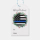Lägg till den avslutande pekfingret till dig den här julhelgen med den här unika Thin Blue Line Polis-Juletiketterna - Helgdag-andedräkt i en amerikansk flagga i Police Flagga färg, modern svartblå och vit design med horn och bär. Juletiketterna är perfekter för polisfamilj, tillsatta lagar eller polisavdelning, julklappar. COPYRIGHT © 2020 Judy Burrows, Black Hund Art - Med alla Höger reserverade. Juletiketter för tunna polisinställningar