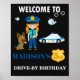 Det här välkomsttecknet från polisen i party är perfekt att välkomna dina gäster vid er polisstation party! Cute party-skylt för unga officerars födelsedagsfest med söt polisman med K9-polisbricka, polisbricka, polisbil, helikopter och viss polisutrustning. Du kan bara redigera den här mallen som är enkel att använda på menyn Anpassa för att göra den speciell.