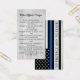 Poliser Prayer Dikt Thin Blue Line Card Visitkort