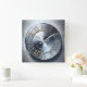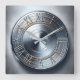 polished nickel round plate wall clock, metal look, industrial style, scratches and circles,
