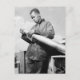 Afrikansk amerikan med artilleriets snäcka. Bild av Världskrig 2-signalkort, utan titel, taget mellan 1940 och 1946.