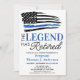 Legenden har dragit sig tillbaka! Inbjudningar till polisen i Pension.. Högtidlighålla år av hängiven service, och vänner och familj från inbjudan till er tillsatta lagar pension party med denna Thin Blue Line-inbjudan till polisen i Pension. USA:s amerikanska flagga i Police Flagga färg, modern trendig black white and blue design. Se vår samling för matchande poliser i pension, poliser i pension party favors och förråd. COPYRIGHT © 2021 Judy Burrows, Black Hund Art - Med alla Höger reserverade. Legenden för polisväsendet Pension Personlig har dragit in inbjudan