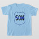 Den här skjortan har en blå sköld runt "Son" i ord som har en tunn blå linje genom den för att världen ska veta att du stöder din förälder.