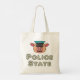 I polisstatens utformning finns ett fånig som hotar att bära uniform i gris och texten nedan "polisstat". Matat upp med att leva i en totalitär stat? Få roligten att kämpa tillbaka.