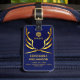 Frontline akut Luggage Tag - En elegant- och öga-fångande polissymbol/logotyp med vågigt sensorer och en vapensköld i modern blå och faux-guld-utformning som kan vara personlig med polistjänstemännen namn; kontaktnummer, direkt namn eller annan information. Denna anpassningsbar polistjänstemans bagagetapp är perfekt för poliser och familjer i tillsatta lagar och alla dem som stöder dem. De är underbara för resor och för att underlätta identifieringen under flygning.