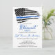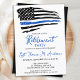 Inbjudningar till polisen i Pension.. Högtidlighålla år av hängiven service, och vänner och familj från inbjudan till er tillsatta lagar pension party med denna Thin Blue Line-inbjudan till polisen i Pension. USA:s amerikanska flagga i Police Flagga färg, modern trendig black white and blue design. Polistjänstemannens inbjudan till pension är också perfekt för polisakademins studentkort, förändringsplats för personalisering. Se vår samling för matchande polisiära gåvor från pension, polisens pension party favors och förråd. COPYRIGHT © 2021 Judy Burrows, Black Hund Art - Med alla Höger reserverade. Inbjudan till det moderna Pension-partiet för polistunnblått Flagga