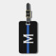 Den här bagagetaggen har en tunn blå polisutformning med ett vågrät blått rand på svart bakgrund och ett monogram i vitt för att du ska kunna anpassa dig.