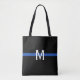 Den här polisens tunna blåradsväska har ett vågrät blått rand med ett monogram på framsidan i vitt för att du ska kunna anpassa dig.