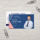 Make every connection count with this campaign business card, featuring a patriotic red white and blue design, space for candidate info and photo (no background, please) and a QR code on the back for digital engagement. Ideal for voter outreach, canvassing kits, and GOTV efforts. Customize easily with your candidate’s name, website, and campaign details. On the back you have a text field dedicated to FEC compliance note.