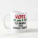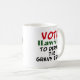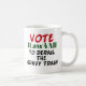 En kaffemugg med slogan "röstar 1Law4All till urspårningen skytåg" på den.
