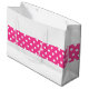 Den här chicen har en sportslig design med ett stort kandiscenter för rosa rand, fyllt med vit polka dots i sidled mot en modern vit bakgrund.