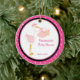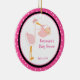 En keepy för en babydusch eller för att fira en nyfödd bebis-ankomst för den här prydnaden. Den har en shock rosa med vit polkpunktbakgrund med en vit mittpunkt som kontureras i en ljusare rosa och svart cirkel. Det finns en rosa stork som håller en flicka bunt från sin näsa. Anpassa med namn och ett år. Kolla in de många andra prydnadsföremål och produkter vi har. ©JW Illustrations