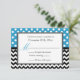Svarskort från snyggt bröllop med en vit polka punkt mönster över blått överst och en svart och vit chevron zigzag mönster över grund.
